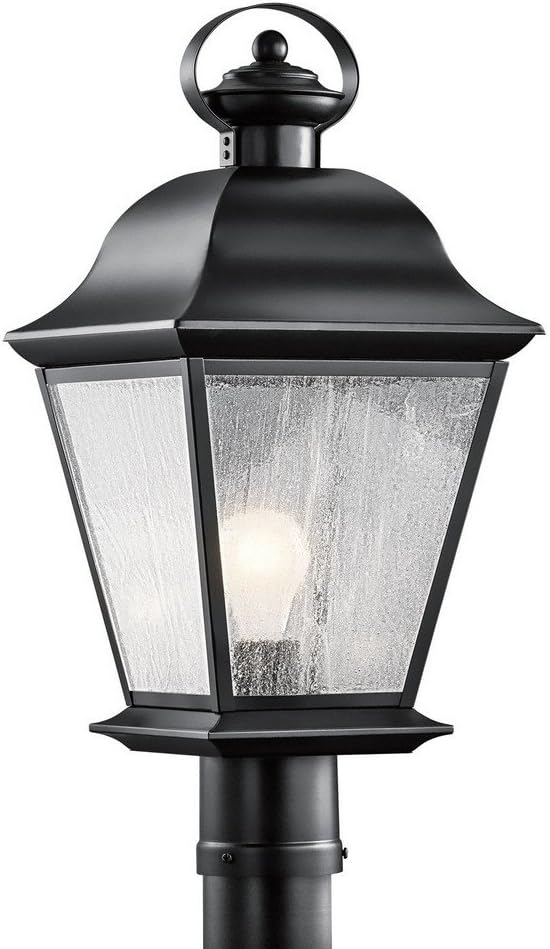 The Mount Vernon 19.5" 1 light outdoor post light features a classic look with its Black finish and clear seeded glass. The Mount Vernon outdoor wall light is perfect in a traditional environment.